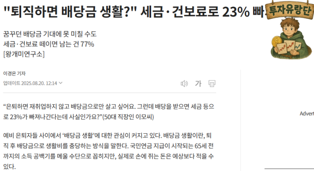 2026년 건보료 리스크: 배당소득에 건강보험료가 부과되면(예상 21.8%), 퇴직연금 인출 시 실질 수익이 감소할 수 있어요.