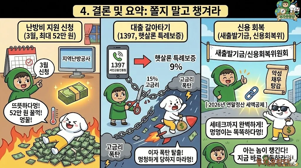 뉴스 앵커들은 “취약계층 따뜻한 겨울나기” 같은 소리 합니다. 감성 팔이 믿지 마십시오. 우리는 철저하게 숫자만 봅니다. 핵심은 두 가지. 지역난방공사 특별지원과 금융위원회 서민금융 정책입니다.