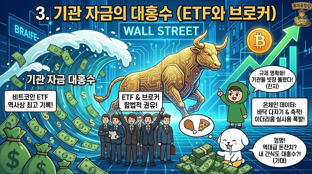 규제가 명확해지면(클래리티 법안 통과), 이제 수많은 투자 자문사와 브로커들이 합법적으로 고객에게 비트코인 ETF를 권유할 수 있게 됩니다.