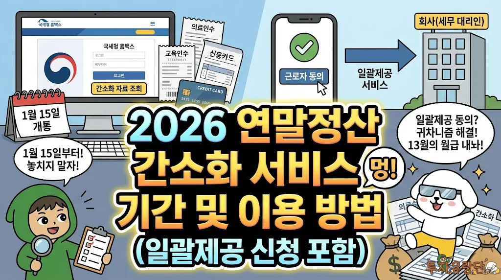 ’13월의 월급’을 결정짓는 2026 연말정산 간소화 서비스 시즌이 다가오고 있습니다. 국세청 홈택스에서 제공하는 이 서비스는 1년간의 지출 내역을 한눈에 확인하고 소득·세액 공제 자료를 내려받을 수 있는 연말정산의 핵심 관문입니다.