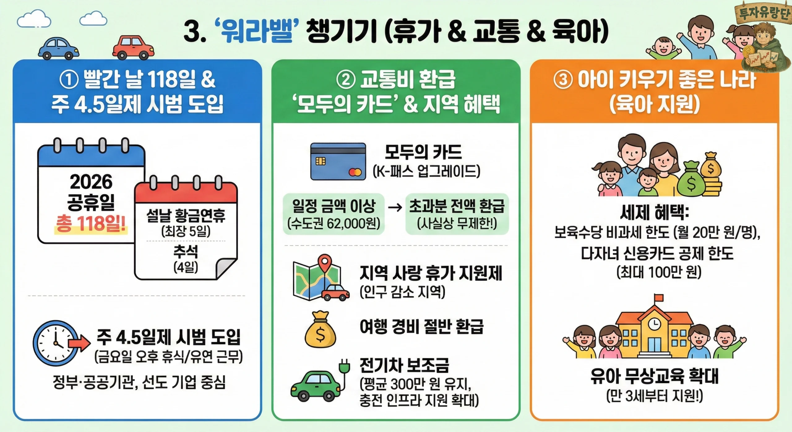 2. 모두의 카드(교통비 환급), 주 4.5일제 시범 도입으로 생활비와 워라밸을 챙깁니다.