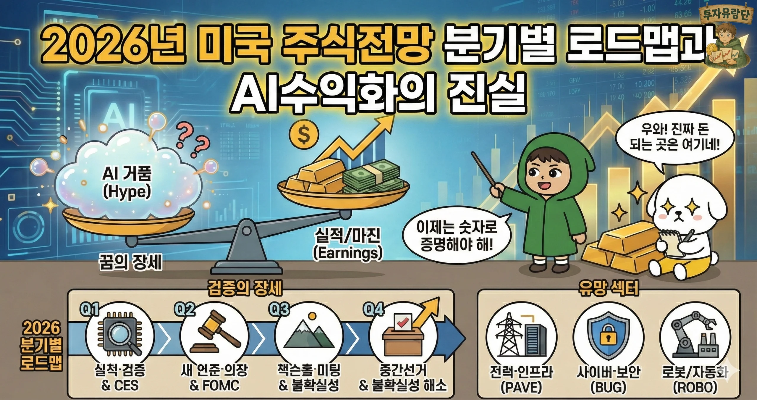 오늘 이 글에서는 뉴스만 봐서는 알 수 없는 2026년 분기별 핵심 로드맵과, 거품 논란 속에서도 살아남을 진짜 주도주 섹터를 명확하게 짚어드리겠습니다. 이 글을 끝까지 읽으시면 올해 언제 현금을 쥐고 있어야 하고, 언제 베팅해야 할지 감이 잡히실 겁니다.