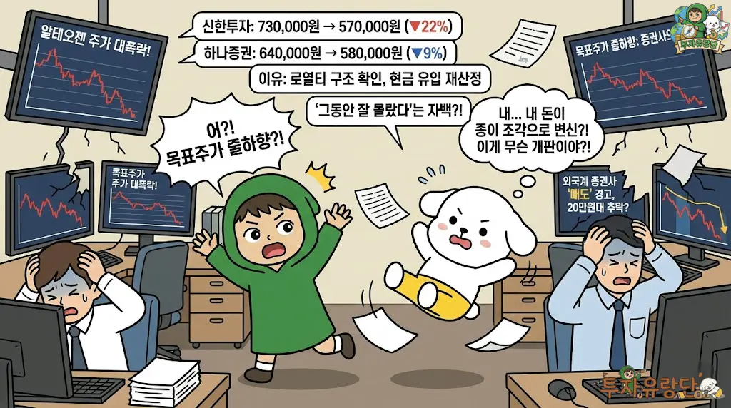 신뢰의 붕괴: 알테오젠 목표주가를 73만 원까지 불렀던 애널리스트들이 말을 바꾸고 있습니다. 바이오 관련주 특유의 ‘뻥튀기’ 시대가 끝났습니다.