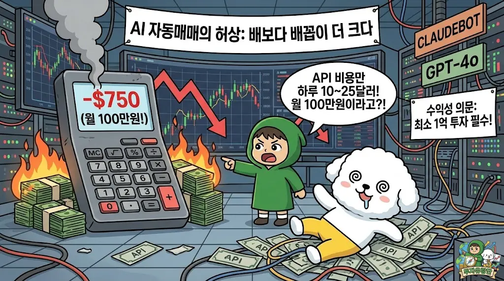 2. 비용의 역설: 소프트웨어는 무료지만, 제대로 된 AI 자동매매 비서 역할을 시키려면 월 $750(약 100만 원) 이상의 API 비용이 청구될 수 있습니다.