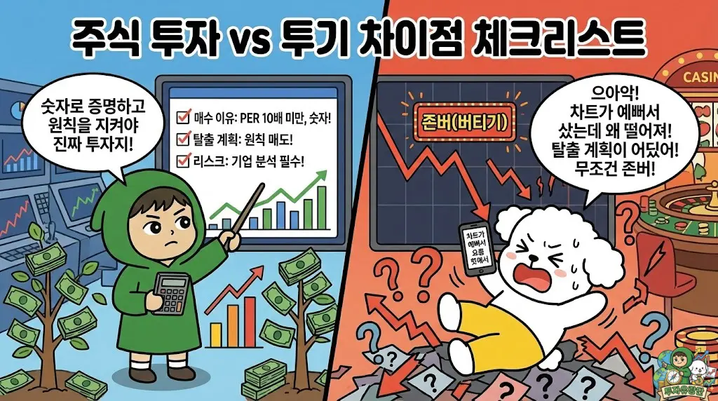 주식과 도박 차이를 모르는 도박꾼은 시장을 ‘돈 놓고 돈 먹기’ 판으로 보지만, 투자자는 ‘기업의 성장에 자본을 태우는’ 과정으로 봅니다. 이 관점의 차이가 10년 뒤 엄청난 격차를 만듭니다.