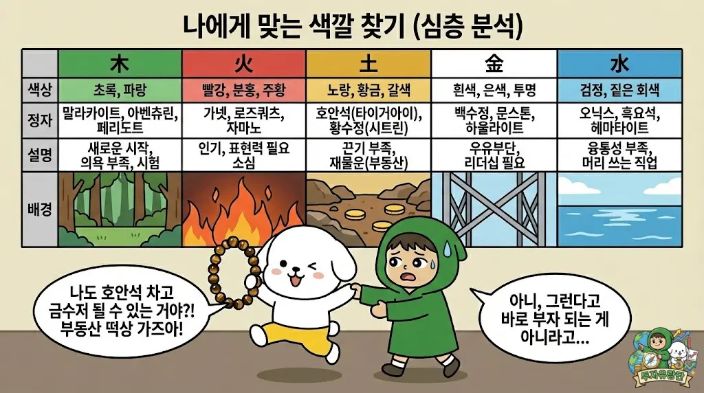 오행별 색상 및 추천 원석 요약표 (필수 저장)