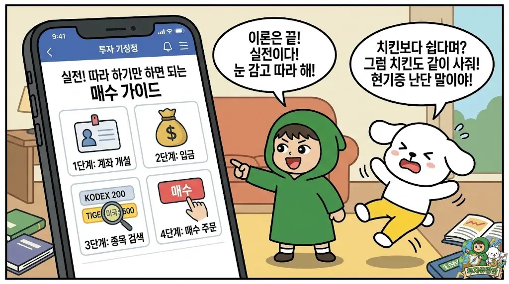 자, 이제 이론은 끝났습니다. 실제로 어떻게 사는지 A to Z로 알려드립니다. 주식 초보도 눈 감고 따라 할 수 있습니다.