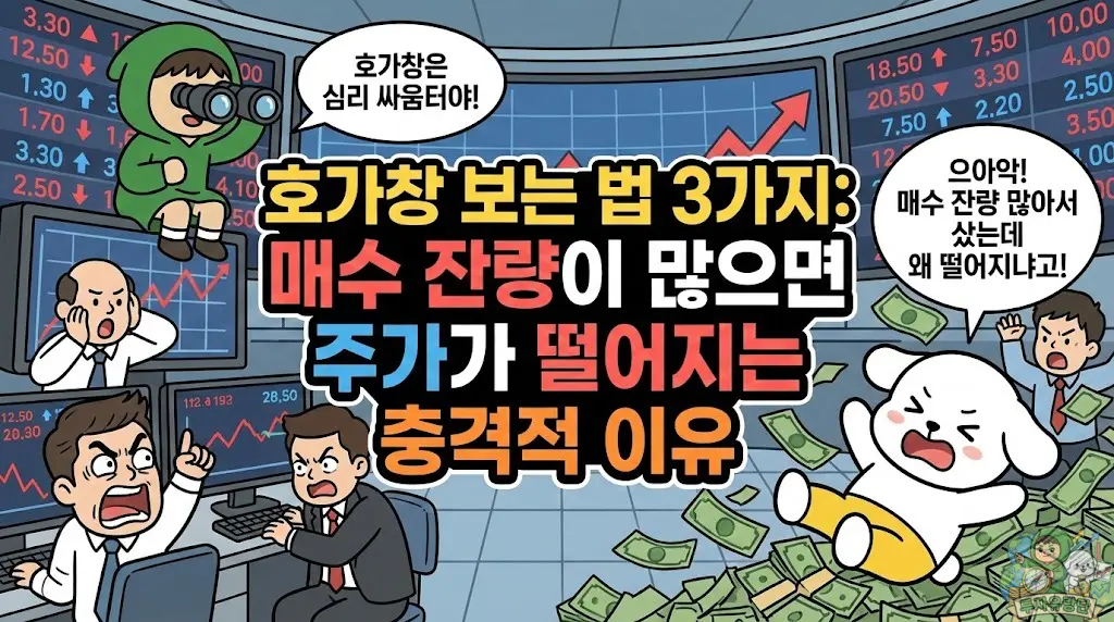 그런데 많은 초보 투자자님이 치명적인 실수를 저지릅니다. “와! 매수 대기 물량이 엄청 많네? 사려는 사람이 많으니까 주가가 오르겠지?” 하고 덜컥 매수 버튼을 누릅니다. 그리고 1분 뒤, 주가는 파란불을 켜며 폭포수처럼 쏟아집니다. “어? 이게 아닌데?”라며 당황하신 적 있으신가요?