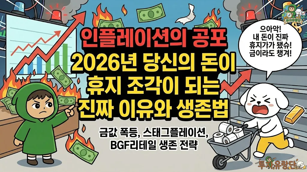 2026년 1월, 잡힌 줄 알았던 인플레이션 망령이 다시 살아났습니다. 정부의 물가 지표와 내 지갑 사정의 괴리, 그리고 사상 최고가를 경신한 금값이 보내는 경고. 2026년 경제 전망을 어둡게 하는 ‘나쁜 인플레이션’의 실체와 스태그플레이션 위기 속에서 내 자산을 지키는 생존 전략을 공개합니다.