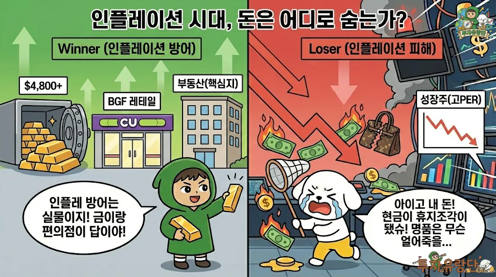 | 핵심 테마 | 실물 자산, 필수 소비재, 가성비 | 현금, 사치재, 성장주(고PER) |