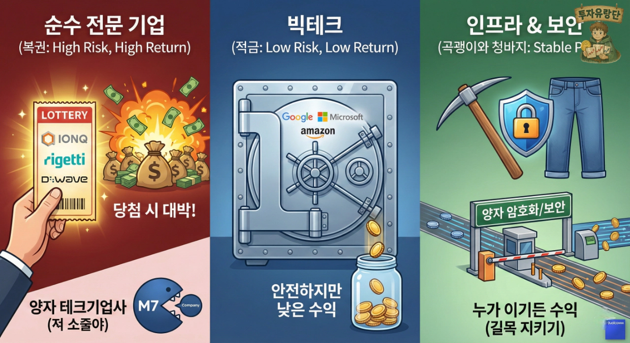 인프라 & 보안 (The Pick and Shovel): 양자 암호화, 보안 시스템 등 산업의 기반을 닦는 기업들입니다.