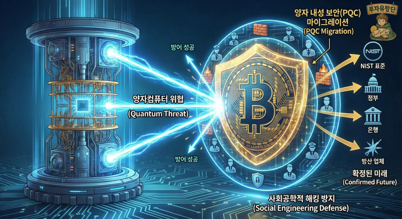 북한이 암호화폐를 훔치는 건 슈퍼컴퓨터 성능 때문이 아니라, 내부자를 이용한 ‘사회공학적 해킹’ 때문이라는 사실, 알고 계셨나요? 비트코인 네트워크도 바보가 아닙니다. 양자 내성 암호화 알고리즘으로 업그레이드(마이그레이션)를 준비하고 있습니다.