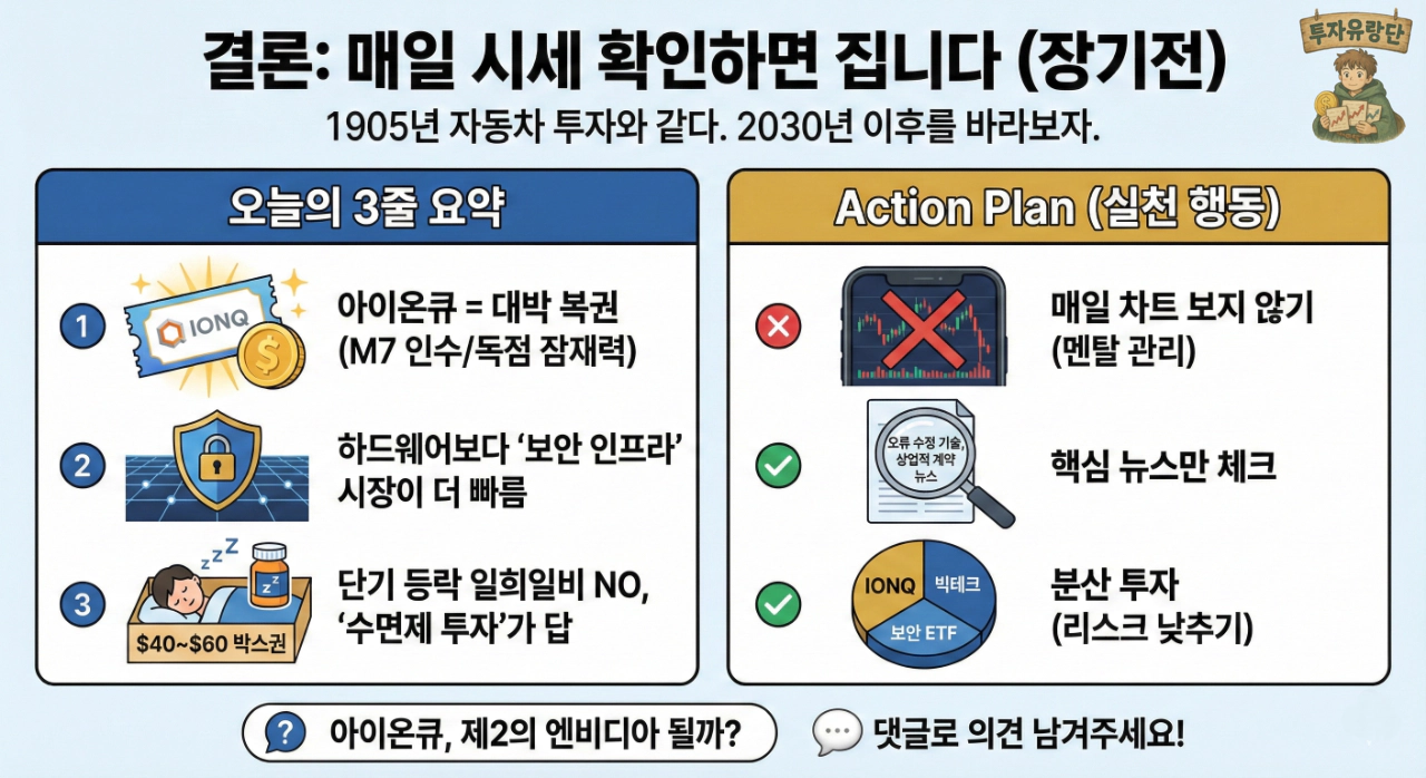 분산 투자: 아이온큐 몰빵보다는 빅테크나 보안 관련 ETF를 섞어서 리스크를 낮추세요.