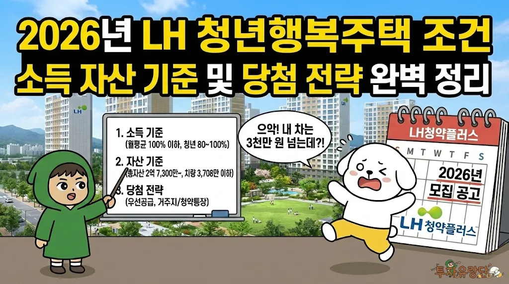 2026년 LH 청년행복주택 조건의 핵심은 ‘주변 시세의 60~80%’라는 파격적인 임대료입니다. 특히 2026년에는 청년 주거 사다리 복원 정책의 일환으로 역세권 등 우수 입지의 공급이 지속될 예정이므로, 바뀐 소득 및 자산 요건을 미리 점검하여 청약 기회를 놓치지 않아야 합니다.