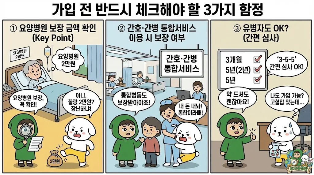 아무리 좋은 간병비보험추천 상품이라도 약관 속에 숨겨진 함정을 피해야 합니다.
