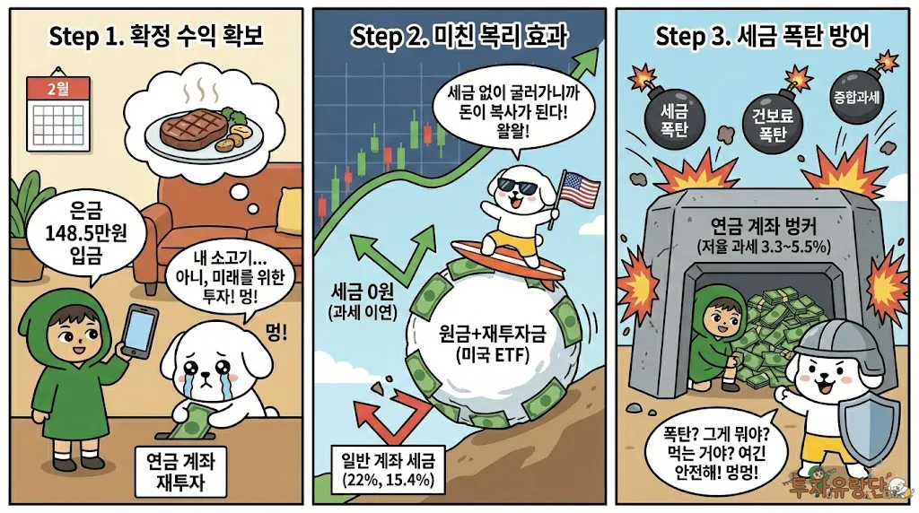 연말이 지나고 2월이 되면, 148만 5천 원이 제 통장에 꽂힙니다. 이걸로 기분 낸다고 소고기 사 먹냐고요? 천만에요. 선수들은 이 돈을 그대로 다시 연금 계좌에 재투자합니다. 여기서부터 남들과 격차가 벌어지기 시작합니다.