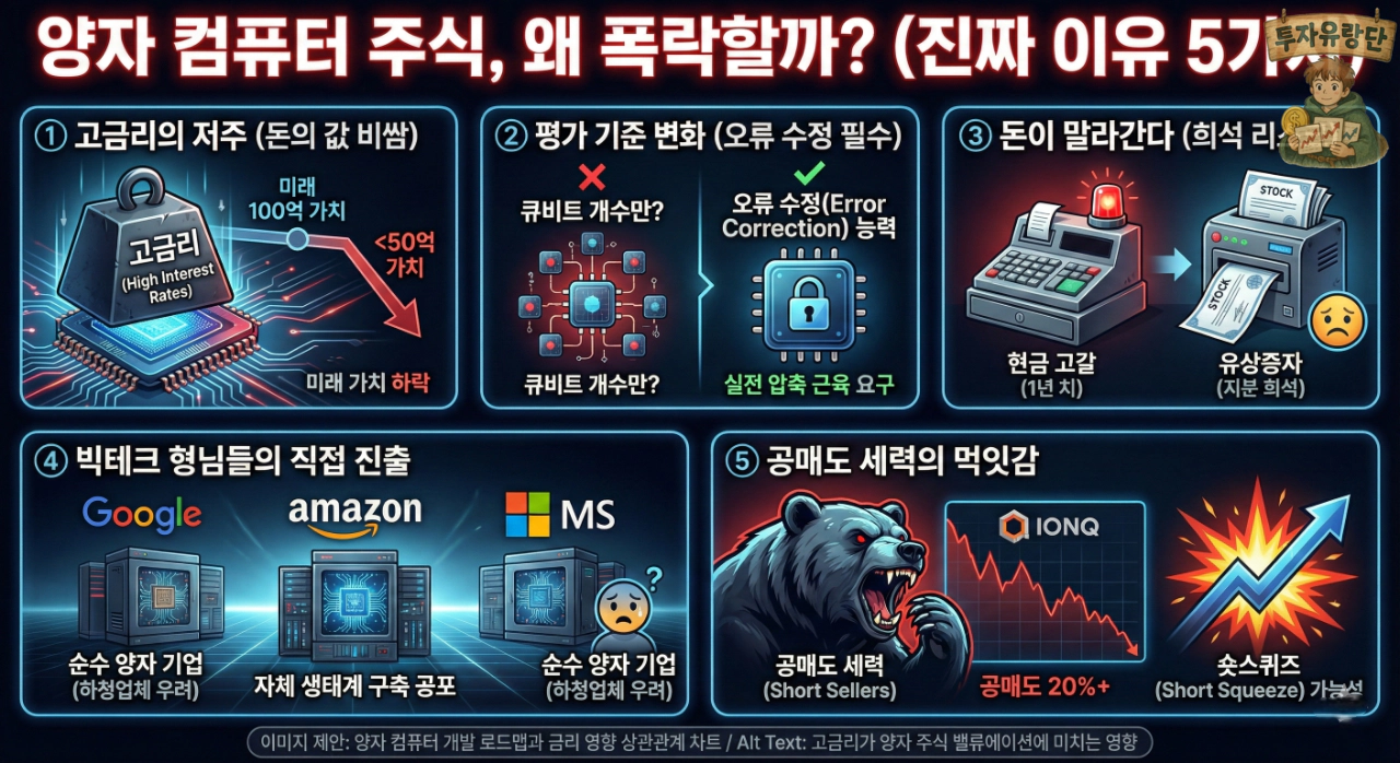 1. 양자 주식 하락은 기술 실패가 아니라 고금리와 유동성 축소 때문이다.