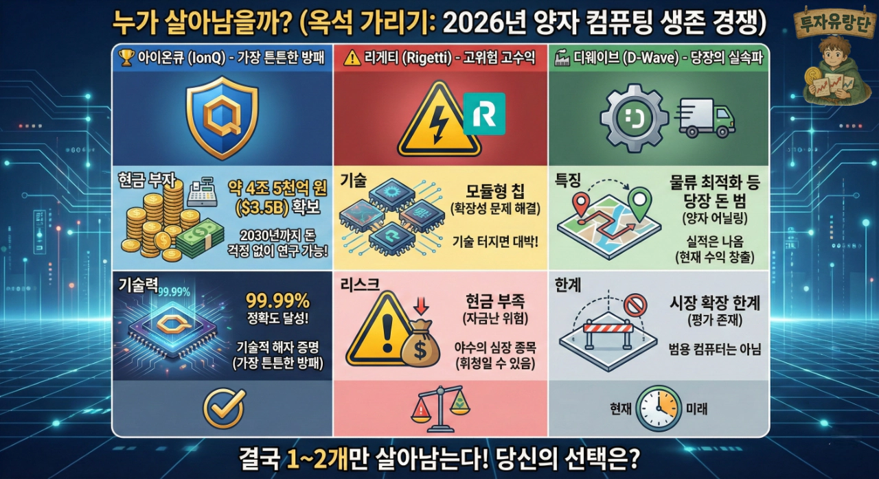 1. 아이온큐(IonQ) 중심: 포트폴리오의 핵심은 현금이 많은 아이온큐로 가져가되, 리게티 등은 소액으로 헷지하세요.