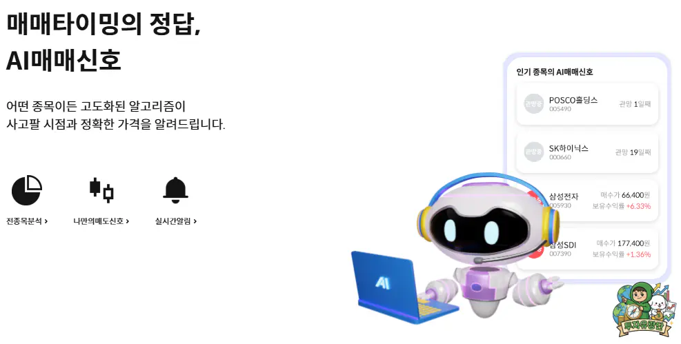1. AI가 전 종목의 빅데이터를 학습하여 최적의 매수, 매도 시점을 실시간으로 알려줍니다.