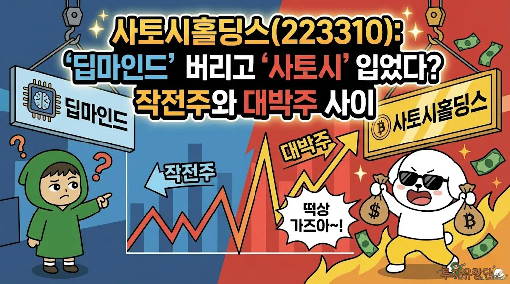다들 홀린 듯이 클릭하셨을 겁니다. ‘사토시홀딩스(Satoshi Holdings)’. 비트코인 창시자 나카모토 사토시가 코스닥에 상장이라도 했냐고요? 천만에요. 여기는 불과 6개월 전까지만 해도 ‘딥마인드플랫폼’이었던 회사입니다.