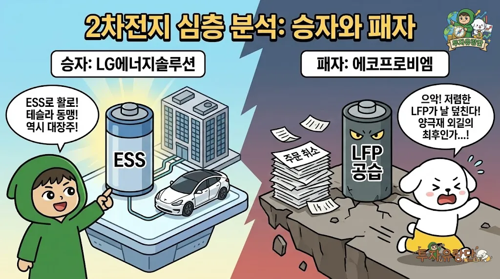 극단적 차별화: LG에너지솔루션은 버티지만 에코프로비엠은 위험합니다. 기술력과 자금력을 갖춘 소수 정예만 살아남습니다.