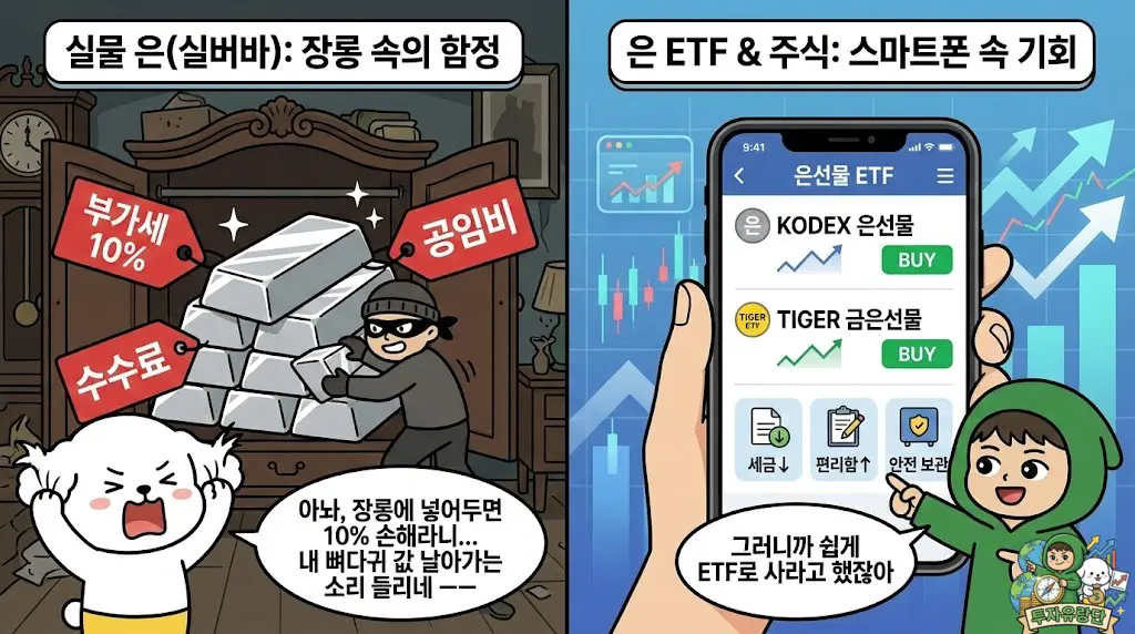 하지만 막상 시작하려니 막막합니다. 집에 은수저를 모아야 하는지, 아니면 주식 계좌로 살 수 있는 건지 헷갈리실 겁니다. 만약 아무런 정보 없이 종로 금은방으로 달려가신다면, 투자자님은 비싼 수수료와 세금 때문에 시작부터 -20% 손해를 보고 들어가는 셈입니다.