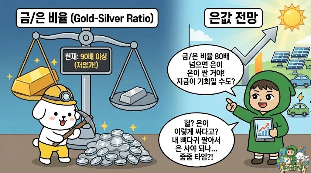 현재: 만약 이 수치가 80배, 90배를 넘어갔다면? 은이 금에 비해 지나치게 저평가(싸다)되어 있다는 뜻입니다. 이때가 바로 은을 매수해야 할 절호의 타이밍입니다.