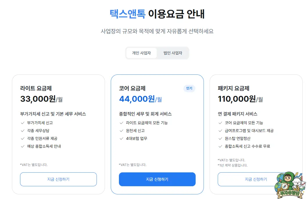 2. 기존 세무사 대비 수수료가 훨씬 저렴하며, 개인사업자와 프리랜서에게 최적화되어 있습니다.
