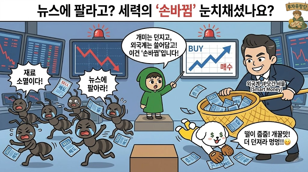 CES 2026 끝나자마자 주가가 빠지니 다들 “재료 소멸이다”라며 도망갑니다. 주식판 격언 중에 ‘소문에 사서 뉴스에 팔아라’라는 말이 있죠. 딱 그 꼴입니다. 근데 여기서 아주 재밌는 데이터가 하나 포착됐습니다.