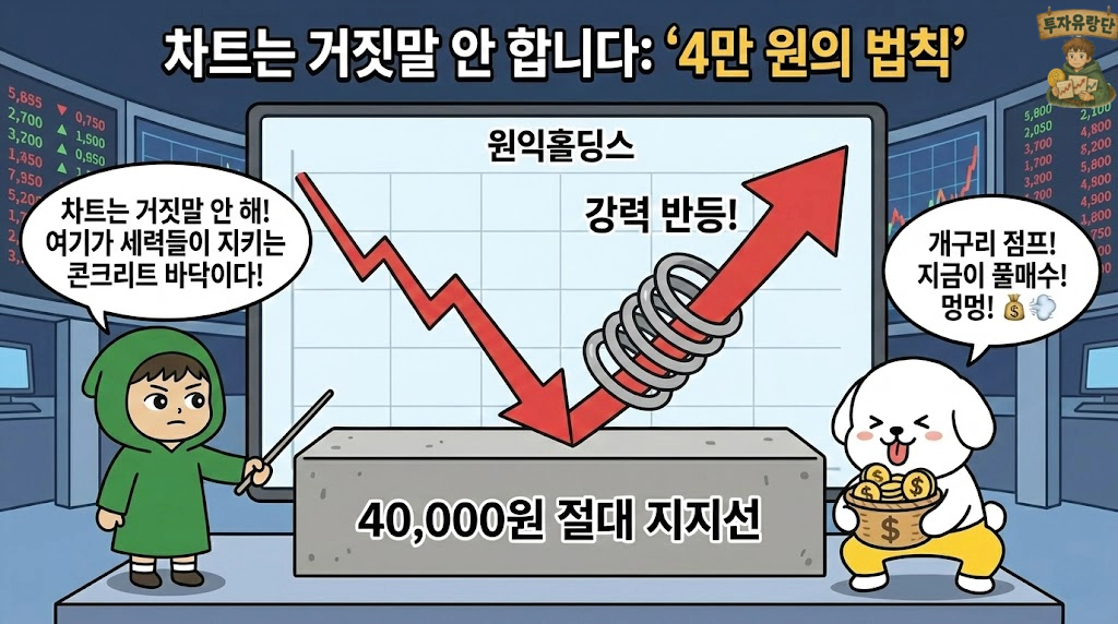 A1. 잠깐 4만 원을 깰 수는 있습니다. 그게 바로 ‘투매’ 유도입니다. 겁먹고 던지는 물량 받아먹으려고 일부러 밉니다. 그때가 진짜 ‘찐바닥’ 매수 찬스입니다.